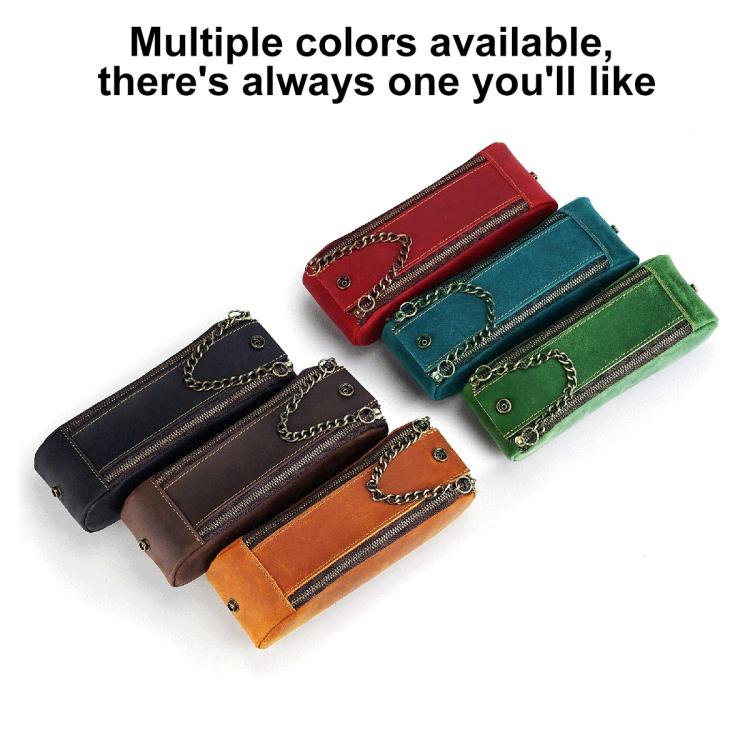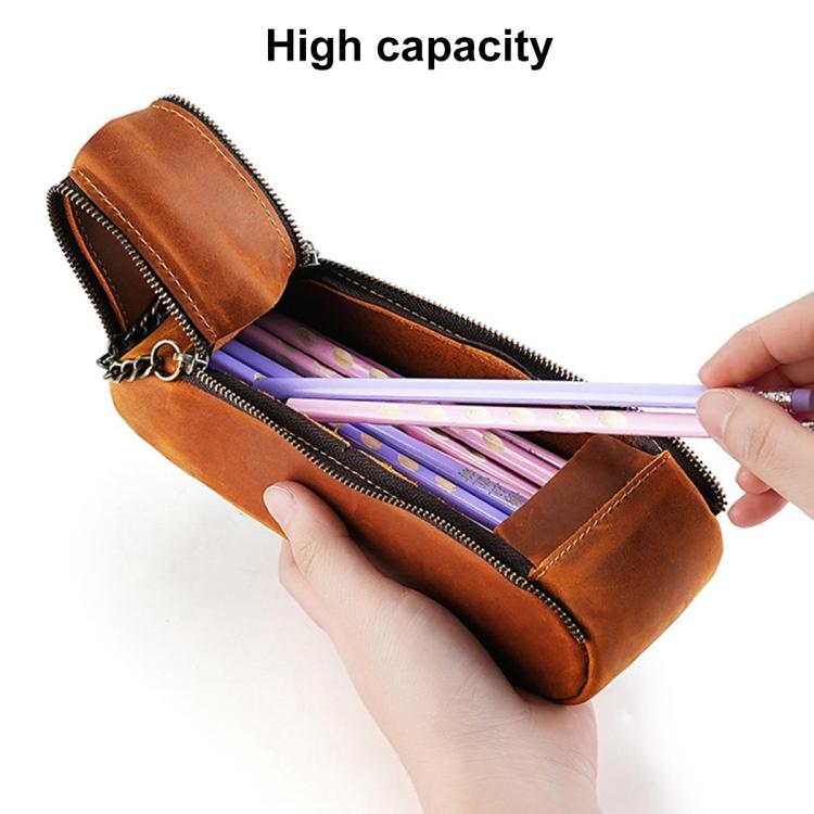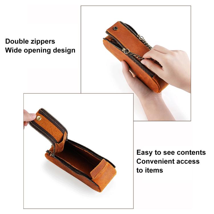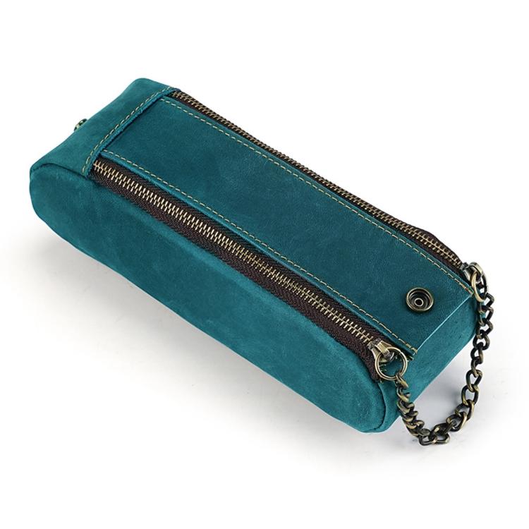 Vintage Genuine Leather Portable Double Zippers Pen Pouch Pencil Case(Blue)