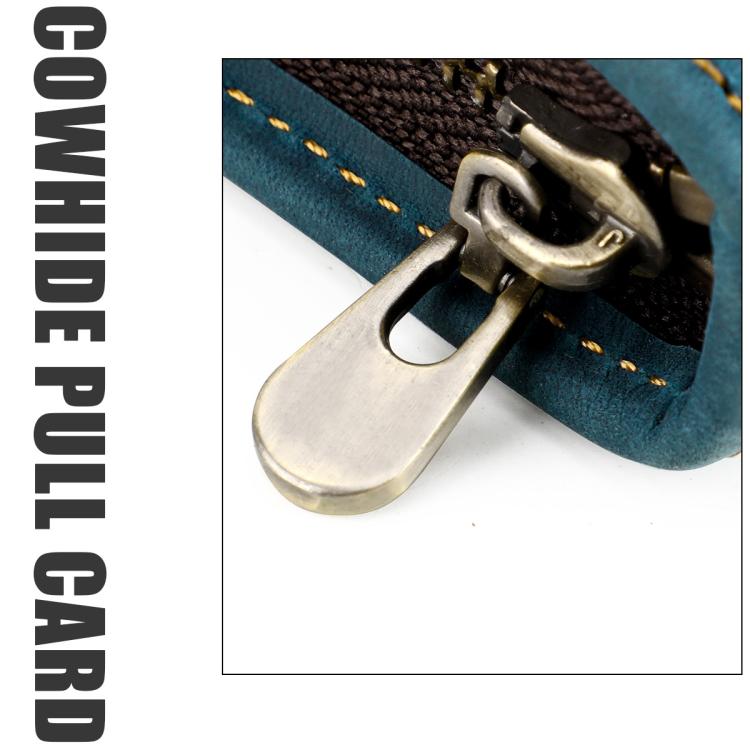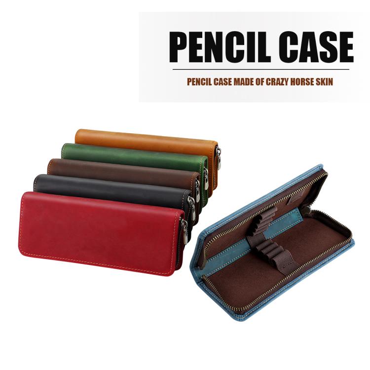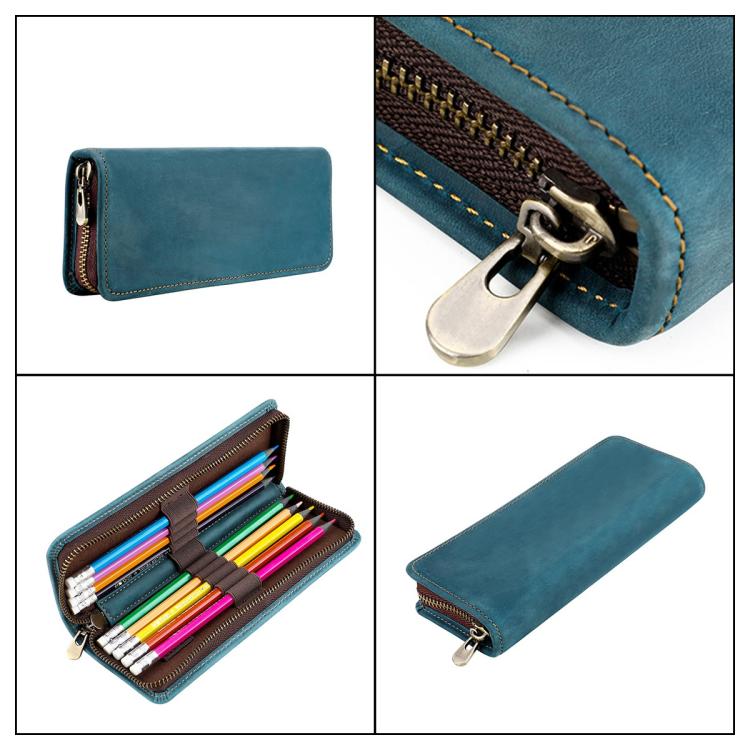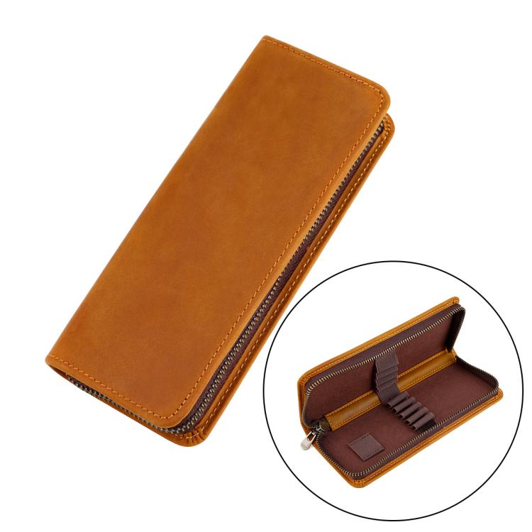Vintage Genuine Leather Square Zipper Pen Pouch Pencil Case(Brown)