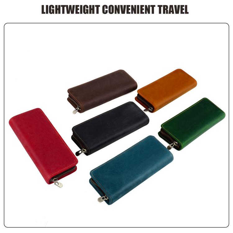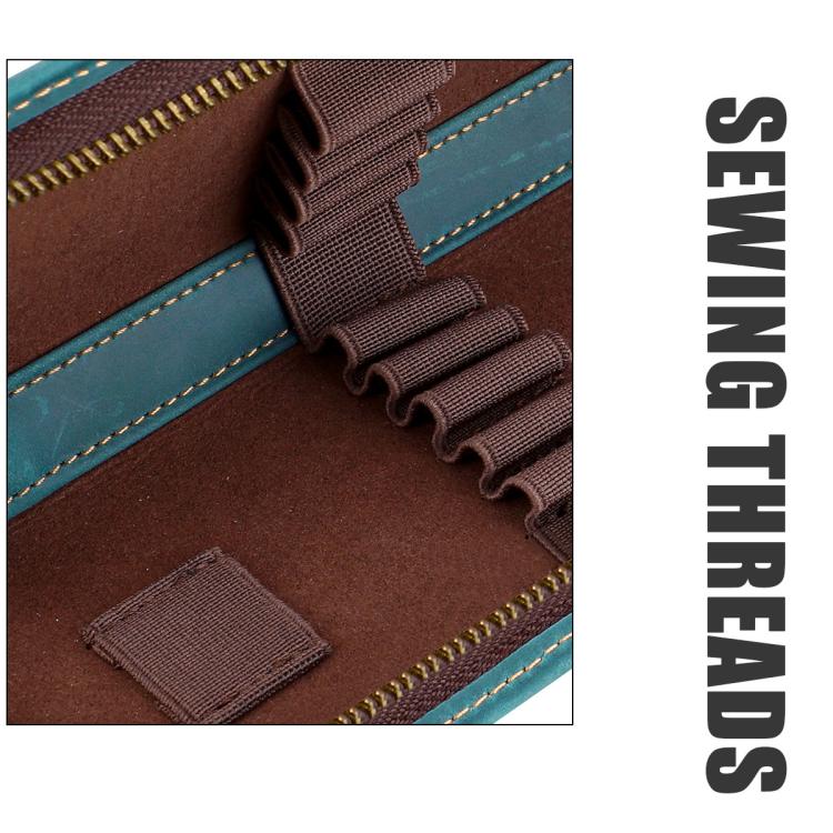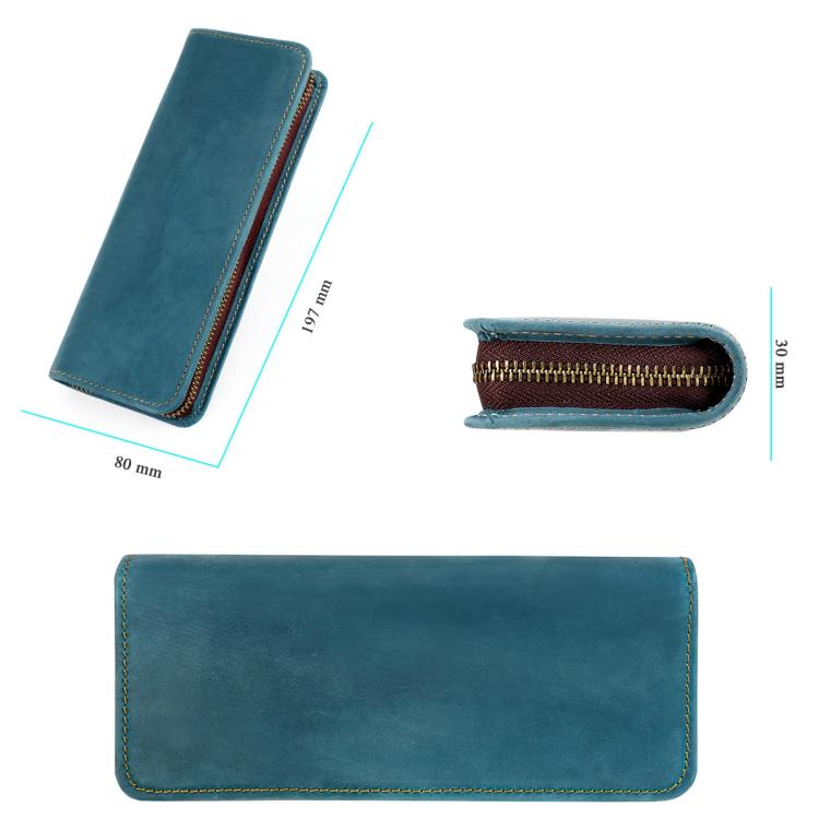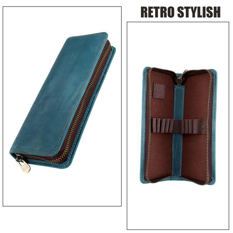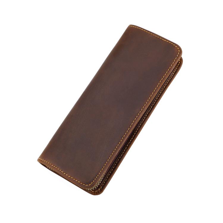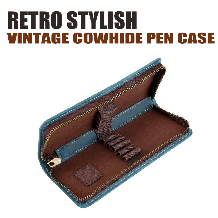 Vintage Genuine Leather Square Zipper Pen Pouch Pencil Case(Coffee)