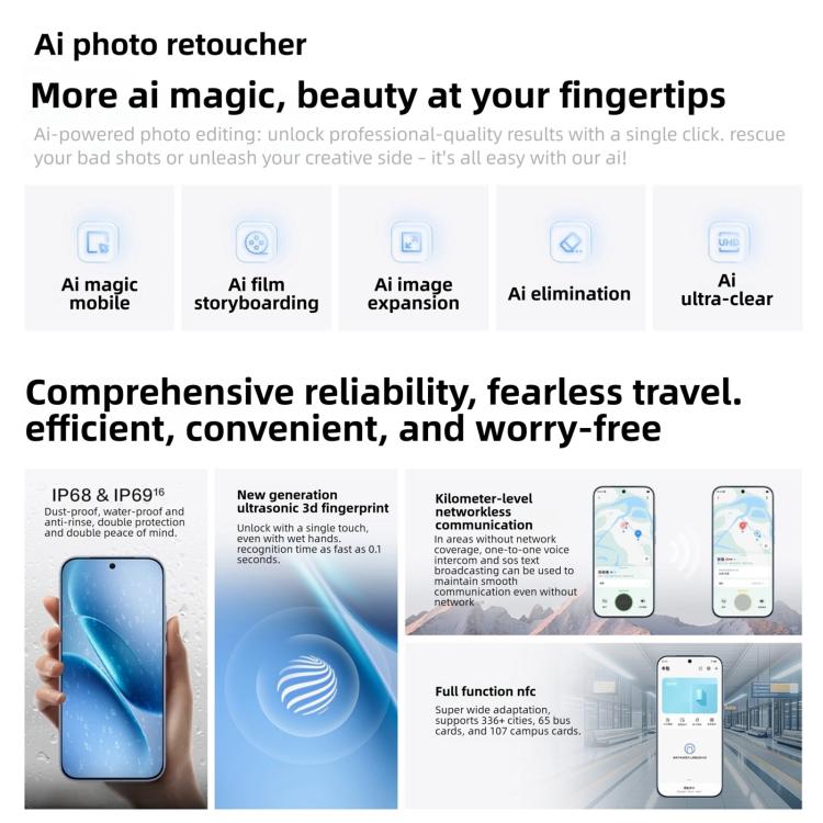 9. Sensors: Gravity sensor, light sensor, proximity sensor, gyroscope, electronic compass, front color temperature sensor, 3D ultrasonic single-point fingerprint sensor, infrared remote control, X-axis linear motor