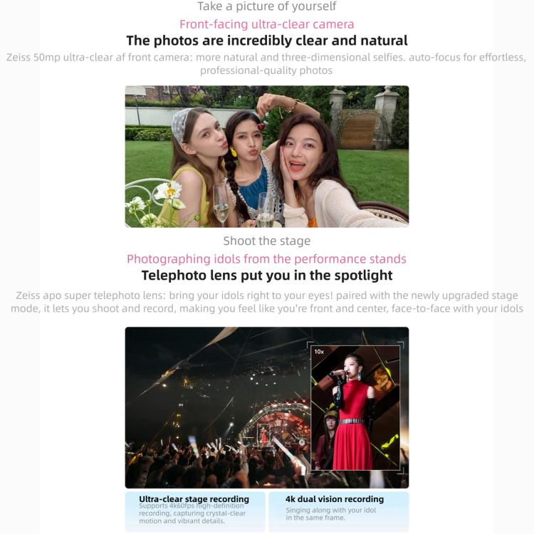 1. Rear: 200MP main F1.68 + 50MP wide F2.0 + 50MP periscope F2.57