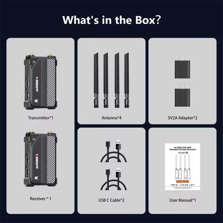 VRRIIS WL095 P Long Range Dual Band Low Latency 4K Ultra HD Wireless Transmitter Receiver Kit, Plug:US Plug