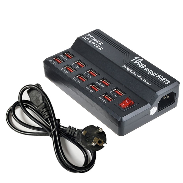 W-838 60W 10 Ports USB Fast Charging Dock Desktop Smart Charger AC100-240V, EU Plug