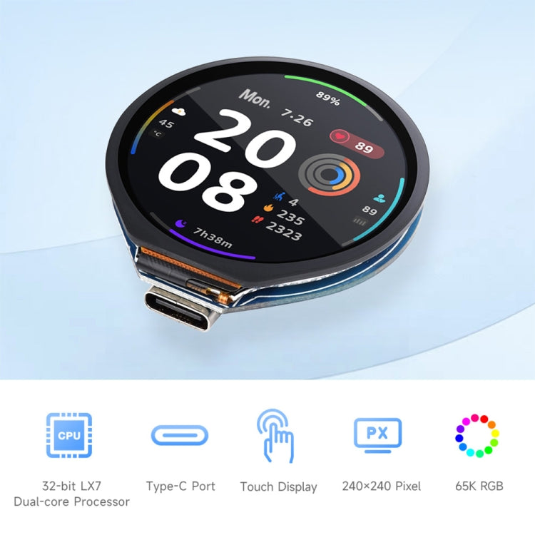 5. Onboard 1.28-inch capacitive touch LCD screen, 240×240 resolution, 65K color