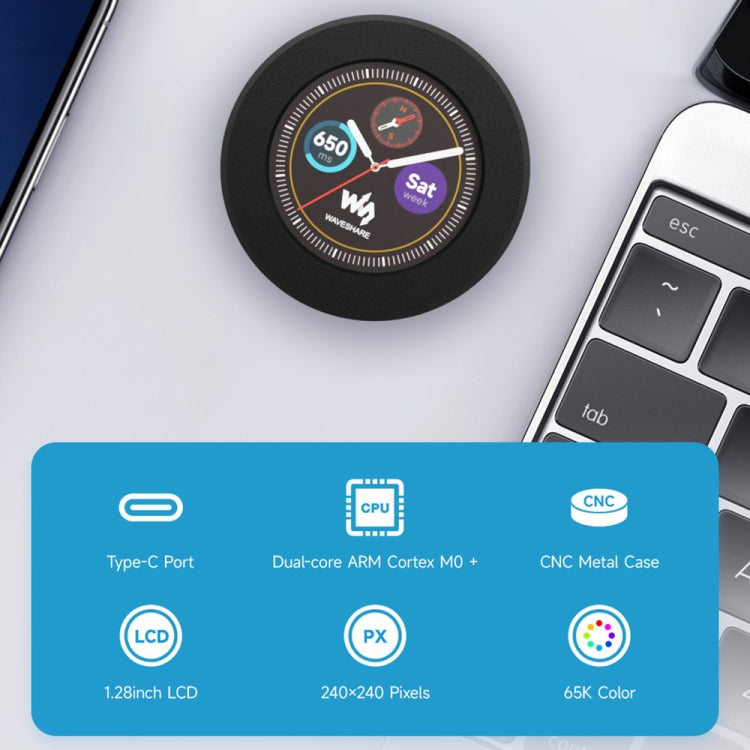 5. Onboard 1.28-inch 240×240 resolution, 65K color IPS LCD display, can clearly display color pictures
