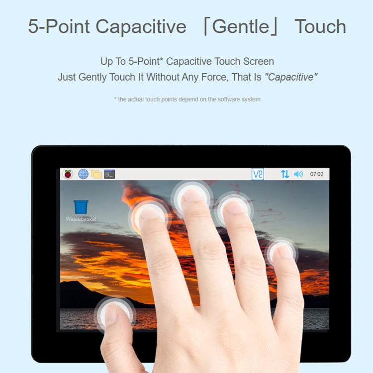 5. Display: 5 inch screen, 800 x 480 pixels, 5-point capacitive touch