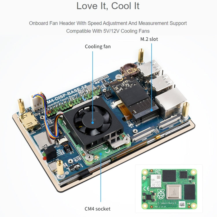 About The ProductI am a Raspberry Pi CM4 kit with a 5 inch touch screen all-in-one machine. The PoE pin Gigabit Ethernet port supports 4K output, onboard four-way USB2.0, 5-inch touch screen, etc. The all-in-one kit is convenient for users.