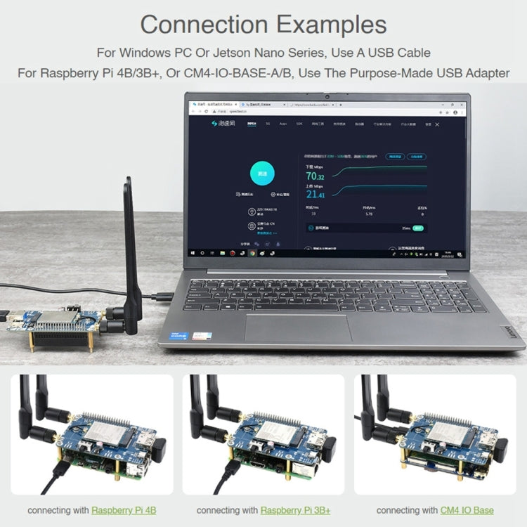 4. USB 3.1 port (USB 2.0 compatible) for connecting to PC, Raspberry Pi, or Jetson Nano host board to enable high speed LTE-A communication