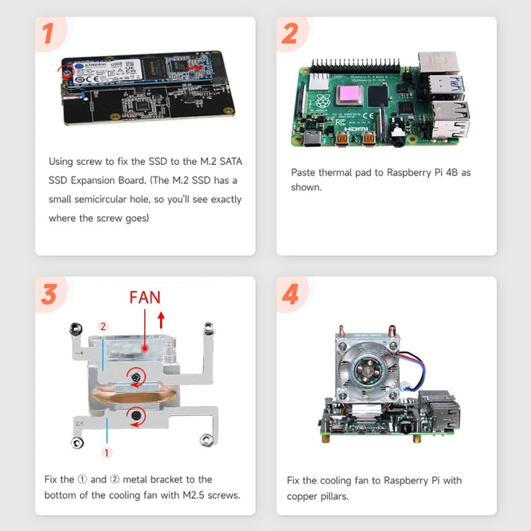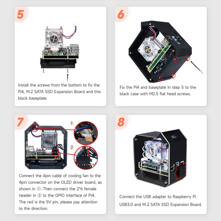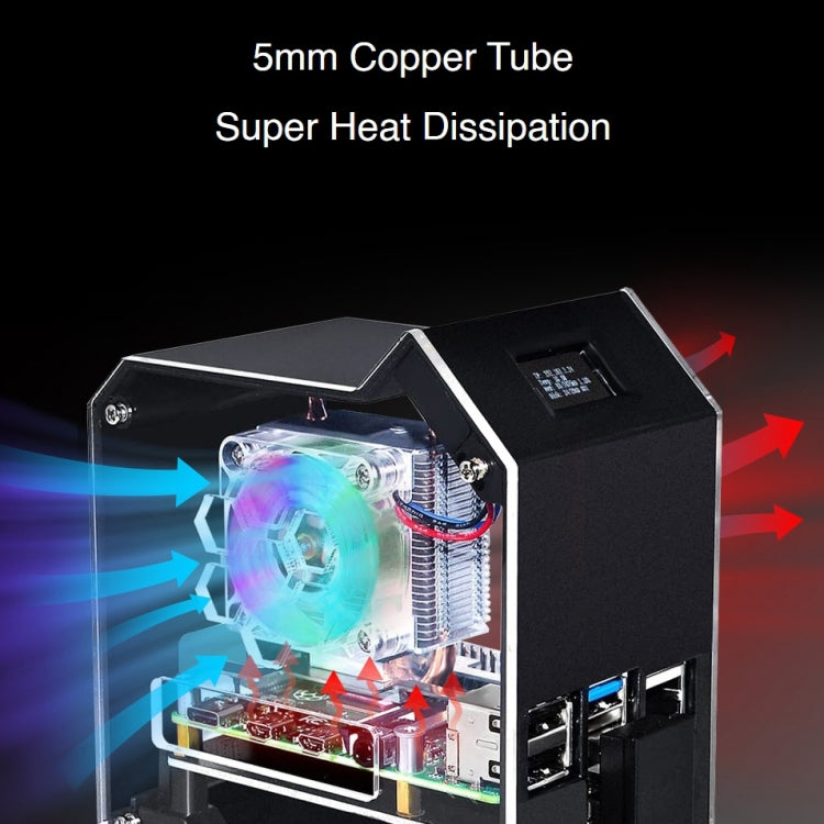 Waveshare Mini Tower NAS Kit for Raspberry Pi 4B Support Up to 2TB M.2 SATA SSD(Black)