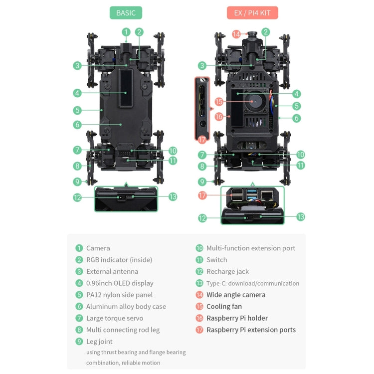 Waveshare WAVEGO 12-DOF Bionic Dog-Like Robot, Basic Version(UK Plug)