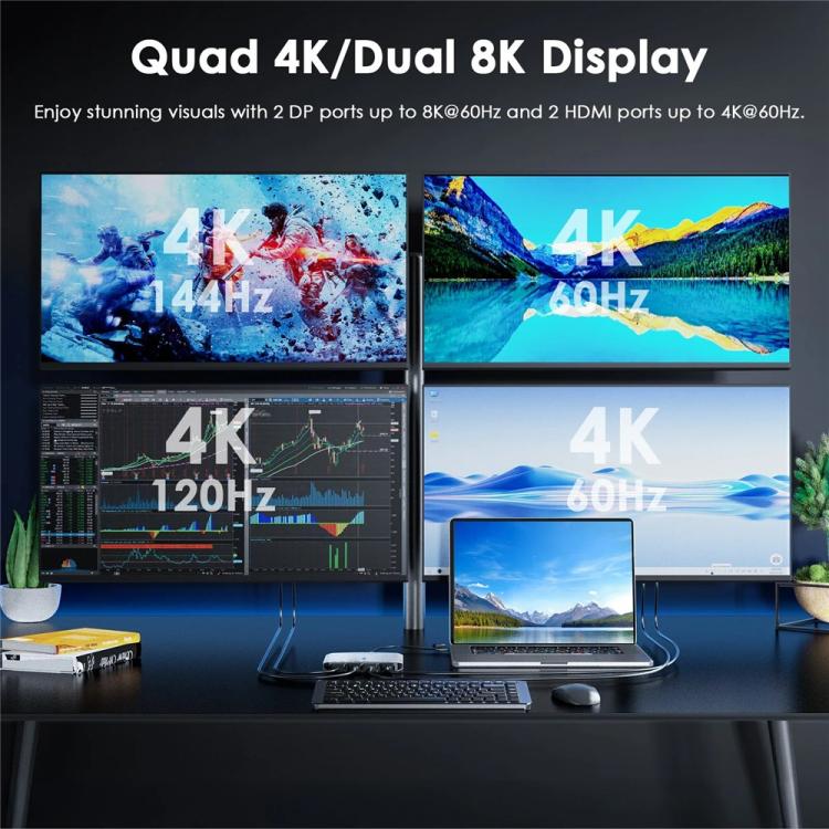 WAVLINK UG7501DH 85W Upstream Charging 2DP + 2HD Converter 4K / 8K Display Adapter