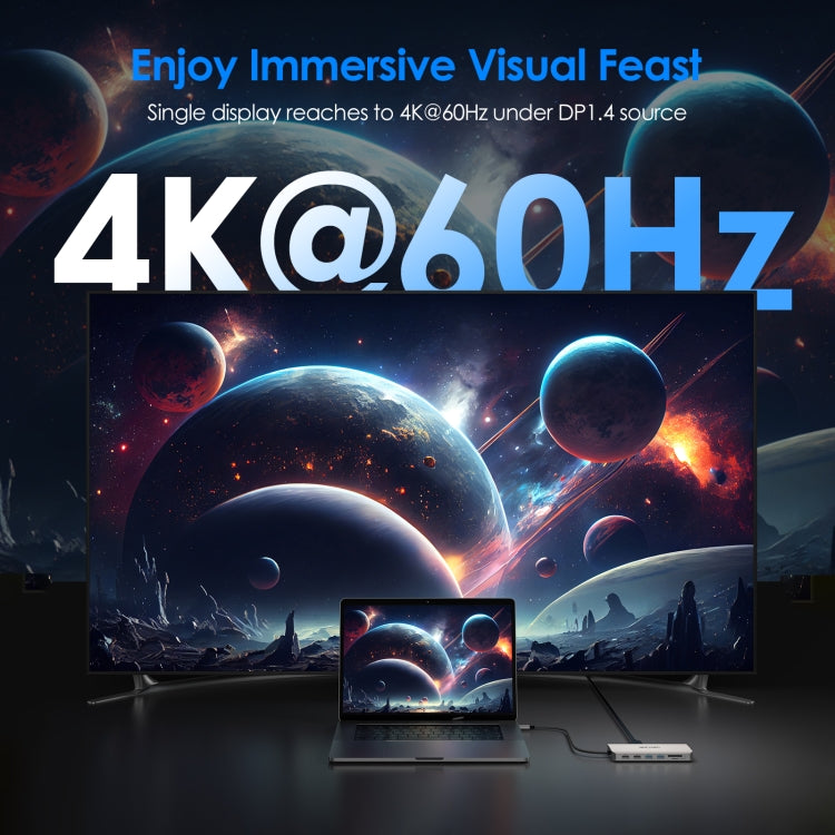 2. Ports: 1x USB-C(PD IN,100W), 1x HDMI (4K 60Hz), 2x DisplayPort(4K 60Hz), 1x Gigabit RJ45, 2xUSB-A 3.0(5Gbps), 2 x USB-A 2.0(480Mbps), 1x SD Card Slot, 1x TF Card Slot, 1 x Audio/Mic Port