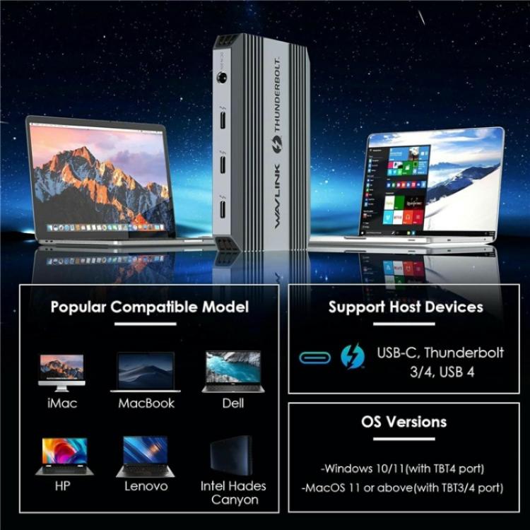 WAVLINK UTD49T 100W PD Input USB-A High Speed Data Transfer Adapter Thunderbolt 4 Hub(US Plug)