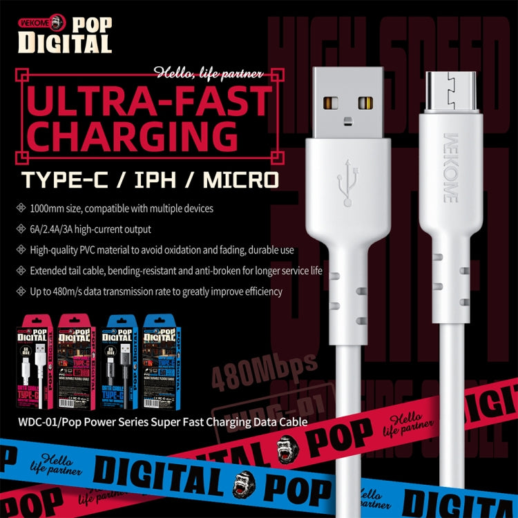 WEKOME WDC-01 Tidal Energy Series 3A USB to Micro USB PVC Data Cable, Length: 1m (White)