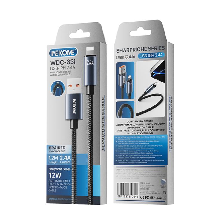 WK WDC-63i 12W USB to 8 Pin Fast Charging Data Cable, Length: 1.2m(Black)