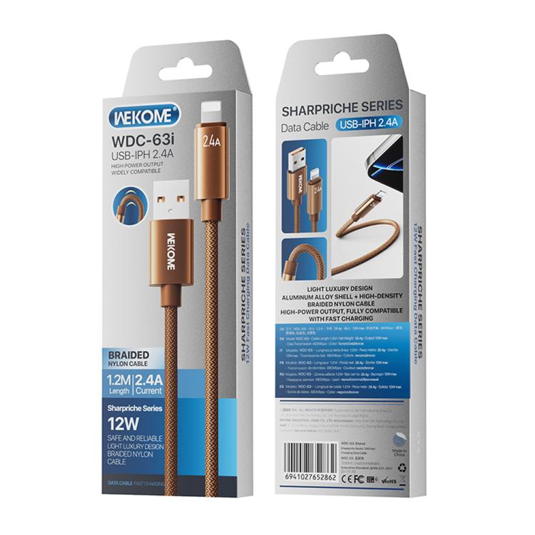 WK WDC-63i 12W USB to 8 Pin Fast Charging Data Cable, Length: 1.2m(Brown)