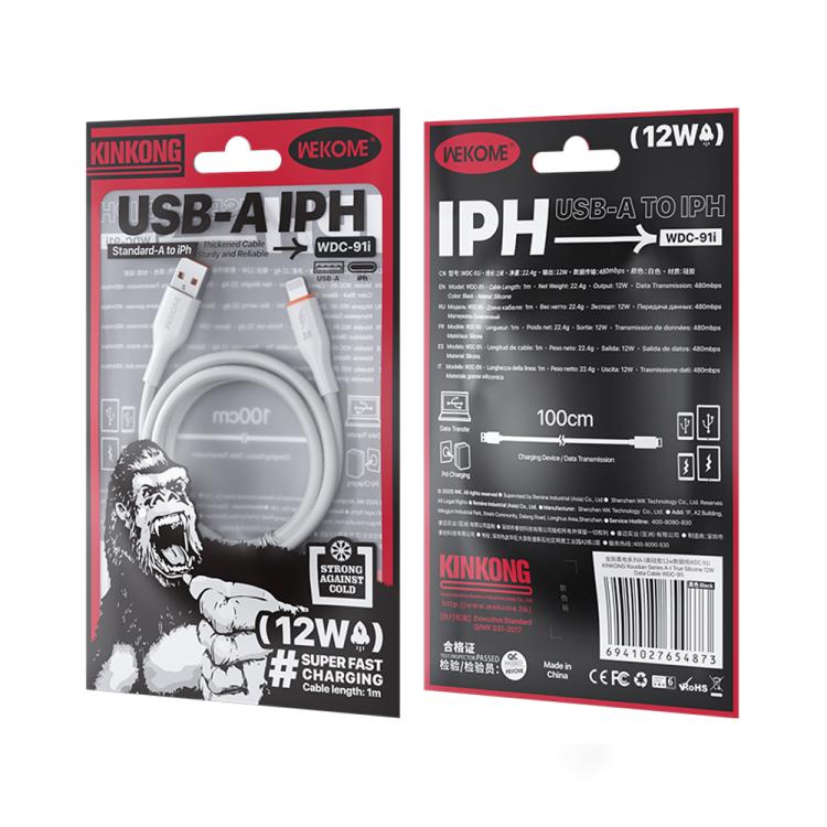 WK WDC-91i 12W USB to 8 Pin Silicone Data Cable, Length: 1.2m(White)
