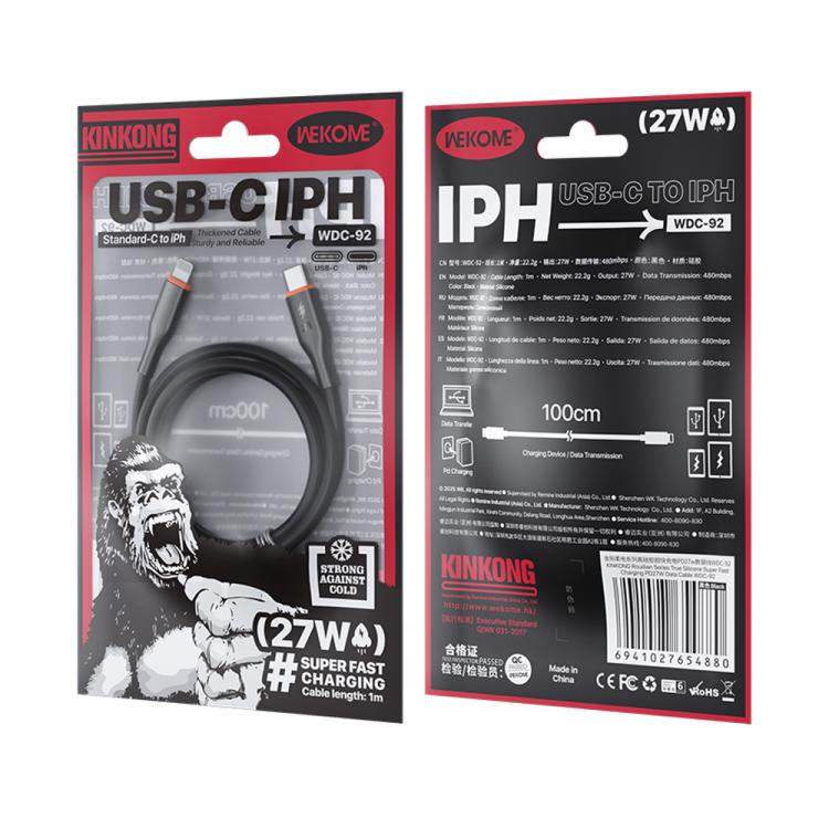 WK WDC-92 PD27W Type-C to 8 Pin Silicone Data Cable, Length: 1.2m(Black)