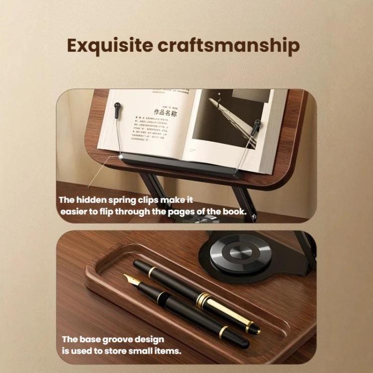 3. A hidden spring clip is included that can be concealed when not in use, facilitating easy page turning, while the base incorporates a groove designed for storing small items such as pens or clips.