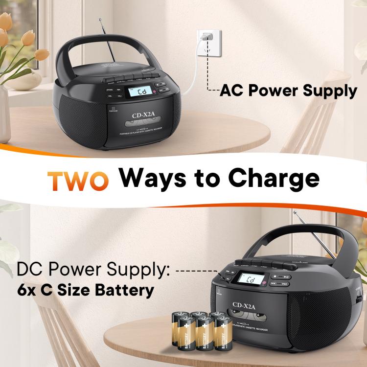 X2A Portable Cassette Player Stereo Bluetooth AM/FM/MP3 Music CD Player Tape Recorder AU Plug(Black)