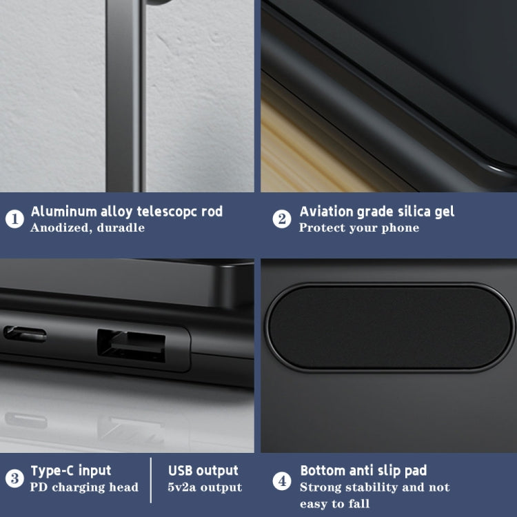 X5 15W Wireless Charging Folding Desk Lamp Phone Stand with Pen Holder(White)