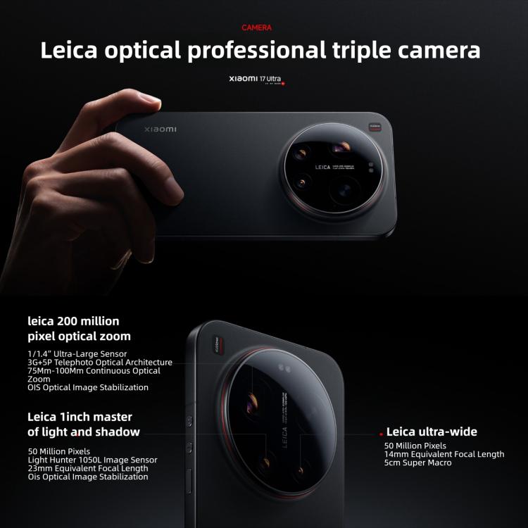 Xiaomi 17 Ultra, 16GB+1TB, 3D Ultrasonic Fingerprint, 6.9 inch Xiaomi HyperOS 3 Snapdragon 8 Elite Gen 5 Octa Core, NFC, Network: 5G (White)