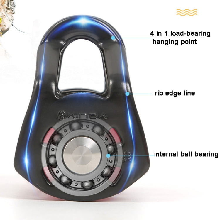 XINDA Outdoor Three Pulley Cableway Crosses Rock Climbing Hoisting Ball Bearing(Black)