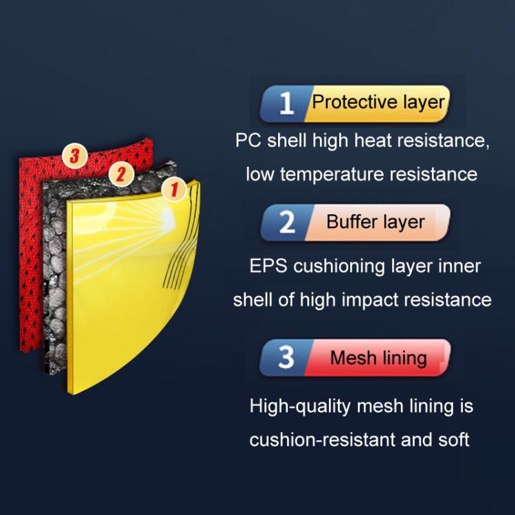 4. Shell PC material, high strength, good toughness; shell EPS material, good elasticity, lightweight thickened protection