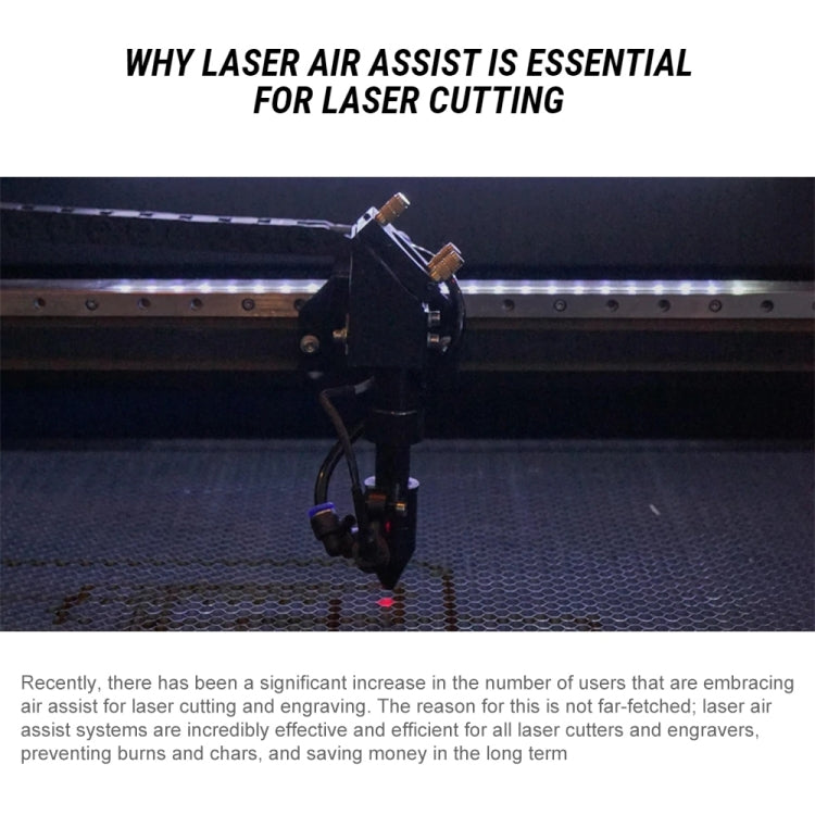 2. The strong and stable air output of 30L/min can quickly blow away the smoke and stains produced by laser processing.