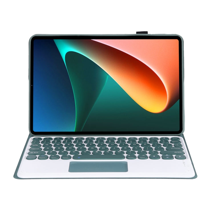 Y0N5-A TPU Tablet Case Lambskin Texture Round Keycap Bluetooth Keyboard Leather Tablet Case with Holder & Touchpad For Xiaomi Pad 5 / 5 Pro(Dark Green + Dark Green)