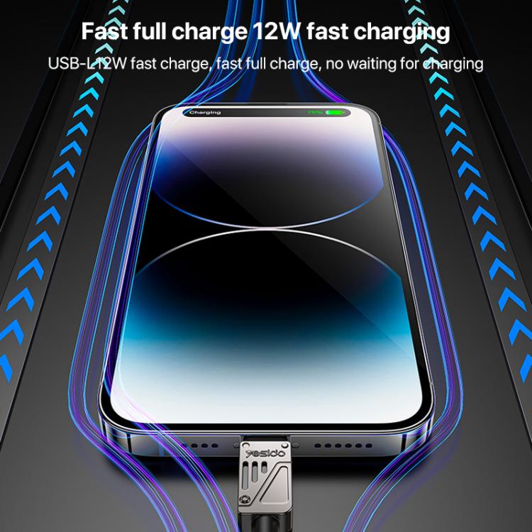 Yesido CA135L 12W 2.4A USB to 8 Pin Zinc Alloy Data Cable, Length:1.2m(Black)