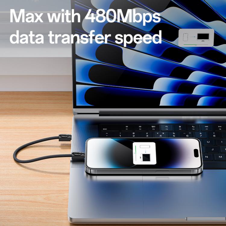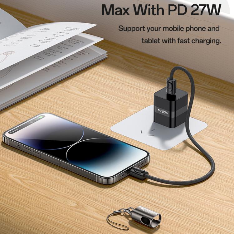 Yesido CA178 Portable Strip PD27W Type-C to 8 Pin Zinc Alloy Data Cable, Length: 20cm(Black)