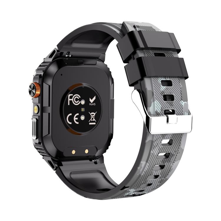 YK12 2.0 inch Screen Outdoor Sports Smart Watch IP68 Waterproof Built-in Flashlight(Camouflage Grey)