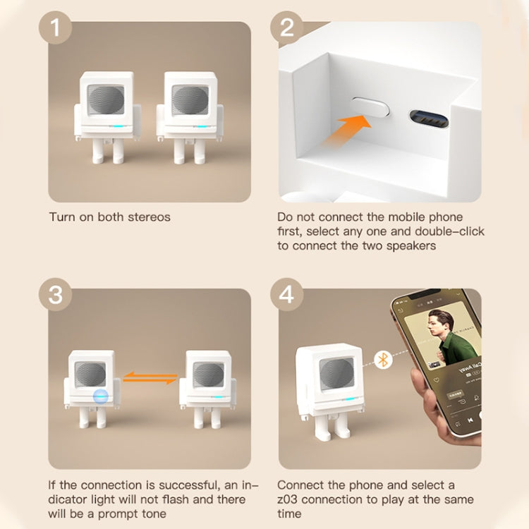 Z03 USB Wireless Portable TWS Stereo Subwoofer Bluetooth Speaker(White)